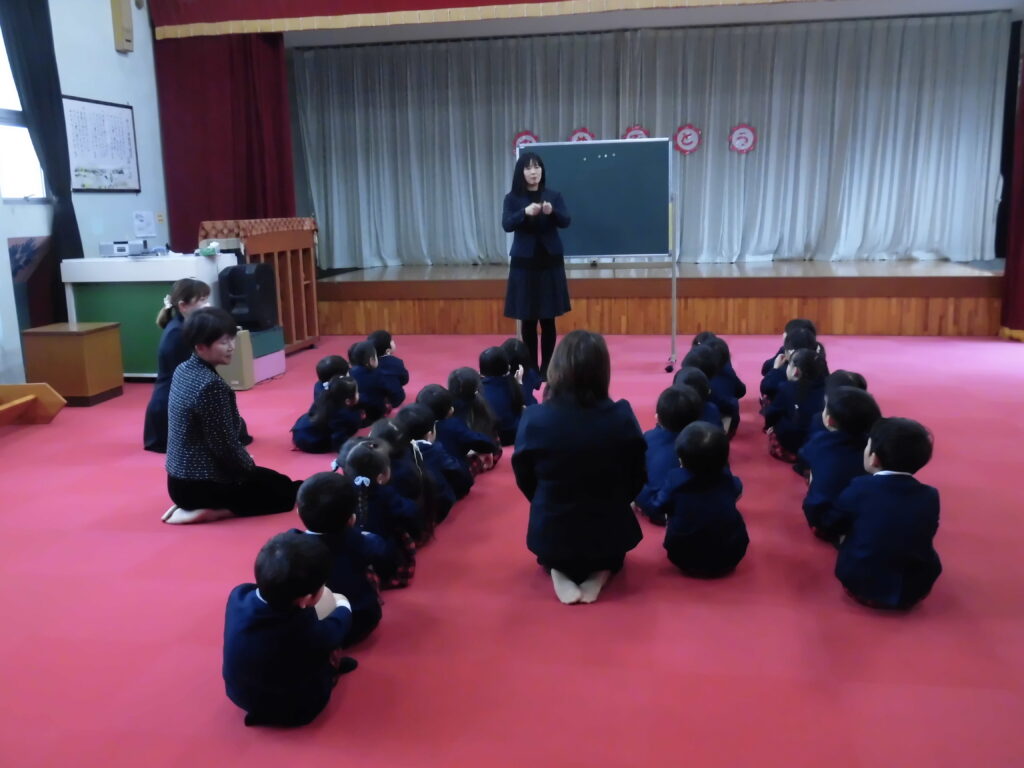 1月7日(木)今日は3学期の始業式、2026年のスタートです。年末・年始に大きなけがや病気もなく過ごした子どもたちが元気に登園してきました。始業式では、午年にちなんで目標をもってどんどん行動することや正月飾りなどについてのお話をしました。教室でも年末・年始の楽しかった出来事などをうれしそうに発表したり、友達と話したりしていました。3学期もみんな元気に楽しく幼稚園生活を送ってほしいと思います。