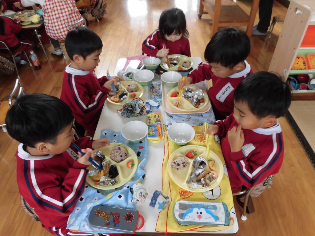 1月9日(金)今日の給食は、お正月にちなんで「おせちランチ」でした。調理員さんたちが子ども一人一人におせち料理を用意してくれてお正月気分を味わいました。今の子どもたちはおせちの好き嫌いもあるようですが、お正月のおせちには、いろいろな願いが込められています。いっぱい食べて今年も元気に過ごしてほしいと思います。